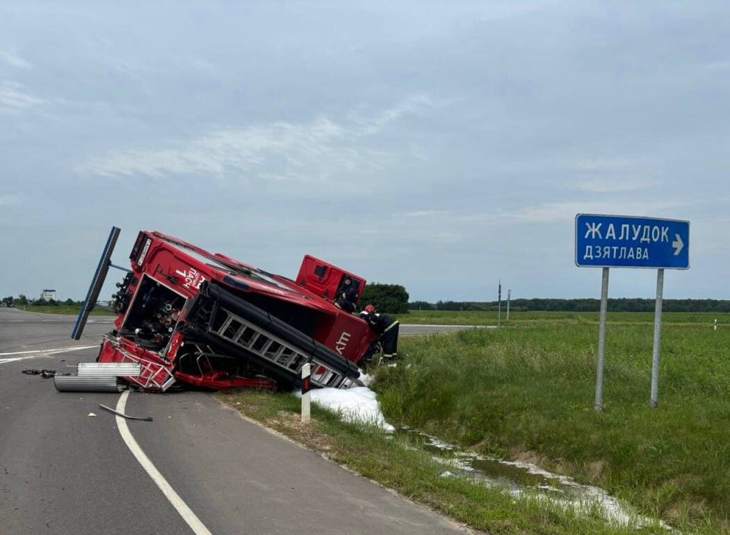 В Гродненской области, практически на окраине Щучина, произошло столкновение двух автомобилей МЧС. Как сообщила пресс-служба ведомства, спецтехника следовала к «месту инцидента» в деревню Микелевщина Мостовского района, когда и случилось ДТП. В результате одна из пожарных машин съехала на обочину и «опрокинулась», о чём свидетельствует единственное опубликованное фото с места происшествия. Из-за инцидента, по данным МЧС, один работник был госпитализирован. В ведомстве уточнили, что угрозы жизни для пострадавшего спасателя нет. Автомобили МЧС получили механические повреждения. Как произошло столкновение, в министерстве не пояснили. ... Продолжение читайте тут. (Или тут.)