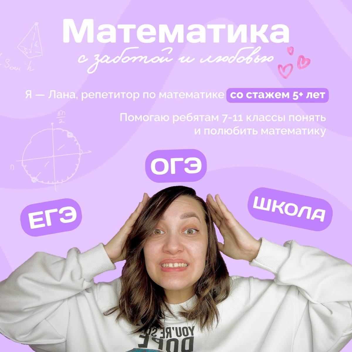 Преднабор 2025-2026 открыт! У нас произошло большое количество изменений и нововведений 💾 Более подробно можете узнать на сайте: https://lanamath.ru/ 💾 Старт обучения — август Как можно учиться со мной? 💾 В мини-группе (до 6 человек) раз или два в неделю по 90 минут + вебинары 💾 Индивидуально с преподавателем из моей команды + вебинары, консультации со мной 💾 Индивидуально дважды в неделю по 60мин. Осталось 1 место! 💾 Самостоятельное обучение по моему видеокурсы и помощью куратора Места ограничены! Узнай, какой формат подходит именно тебе на бесплатной консультации, на которой мы также: 💾 познакомимся и поболтаем, 💾 обсудим новые особенности сдачи ЕГЭ, 💾 составим индивидуальный план подготовки. 💾 После консультации открываю доступ к моему курсу подготовки к ЕГЭ по профильной математике только до конца июня! Для записи и по всем вопросам пиши мне @manager_LanaMath