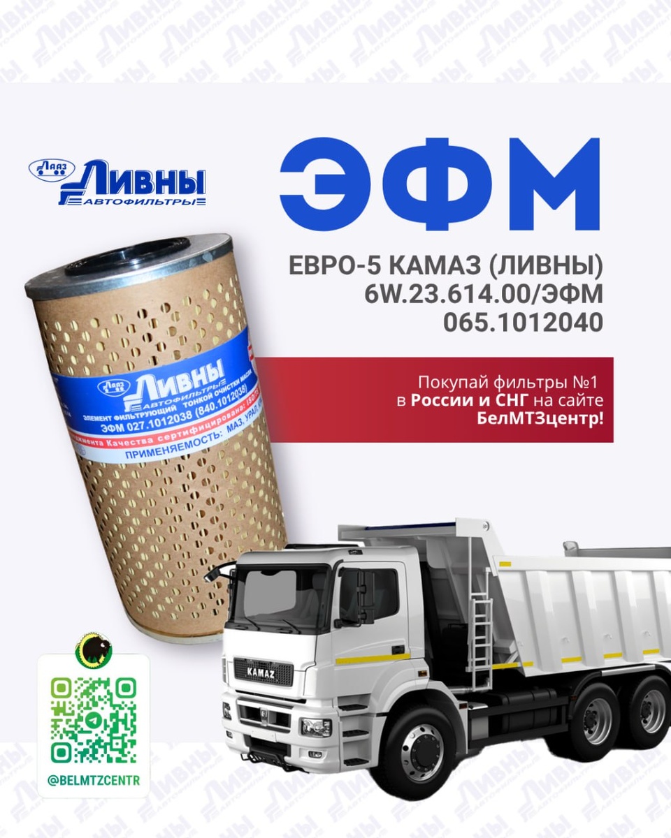 🔰🙃🙃 🙃🙃🙃🙃🙃🙃🙃🔰 Покупай автофильтры на сайте БелМТЗцентр ЭМФ 💥 ЭТФ 💥ЭВФ и другую продукцию АО «Автоагрегат» в нашем каталоге! ➿➿➿➿➿➿➿➿➿ Применение в производстве высококачественной фильтровальной бумаги и клеев импортного производства, а также разработок специалистов предприятия позволяет производить продукцию высокого качества. 👇🏻🙃🙃🙃🙃🙃🙃👇🏻 💥Элемент фильтра масляного ЕВРО-5 КАМАЗ (ЛИВНЫ) 6W.23.614.00/ЭФМ 065.1012040 🌐 www.belmtz.ru.com 📞 +7 (473) 270 70 29 #belmtzcentr_сотрудничество