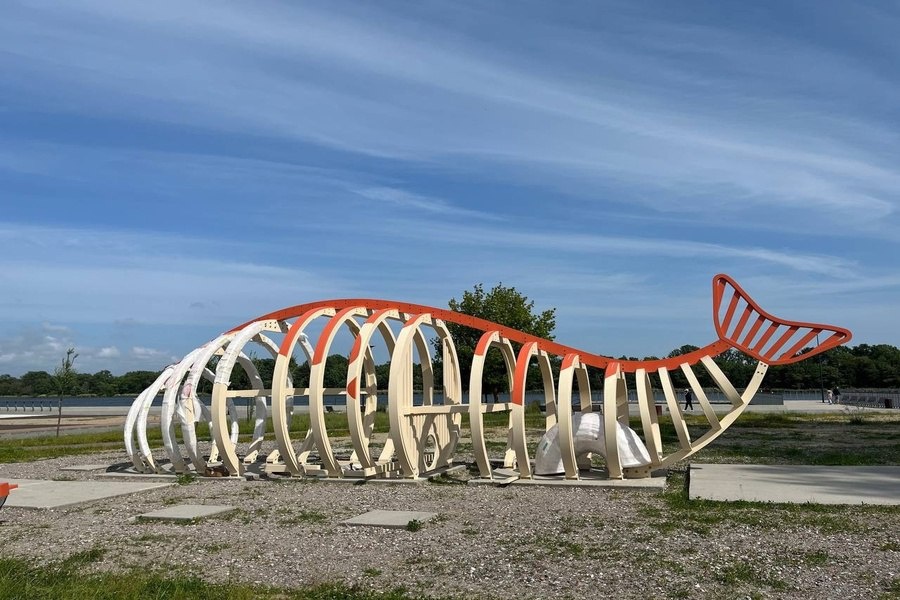 На самом деле там устанавливают детский игровой комплекс в виде рыбы.
