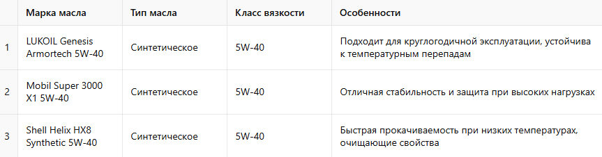 Синтетика — оптимальный выбор для большинства автовладельцев. Оно обладает высокой стабильностью характеристик в широком диапазоне температур, лучше защищает двигатель при холодном запуске и реже требует замены. Особенно актуально использование синтетических масел с вязкостью 5W-40 и 5W-30 для круглогодичной езды, в том числе в условиях зимы.