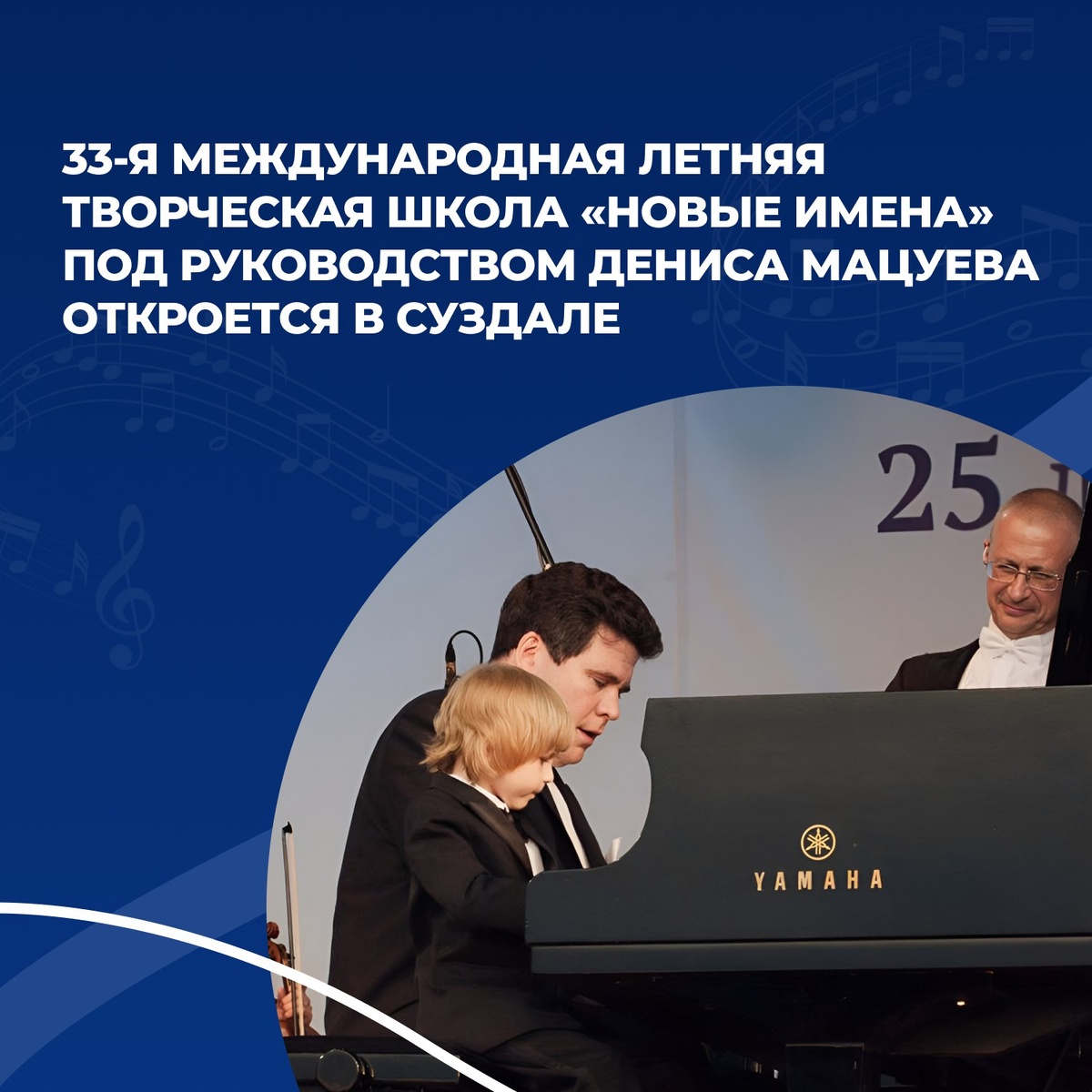 29 июня стартует 33-я Международная летняя творческая школа под руководством народного артиста РФ Дениса Мацуева Мероприятие пройдёт в Суздале. Запланированы две смены: с 29 июня по 8 июля и с 14 по 23 июля. В этот раз образовательная программа для одарённых музыкантов и художников впервые будет организована совместно с Летним музыкальным фестивалем Дениса Мацуева. В 2025 году участниками станут более 200 молодых музыкантов и художников. Под руководством ведущих деятелей искусства и педагогов профильных вузов они примут участие в мастер-классах, концертах, пленэрах и выставках. Проект реализуется при поддержке Президентского фонда культурных инициатив, Минкульта РФ, а также под патронатом полпреда в ЦФО Игоря Щёголева: https://clck.ru/3Mm4LD