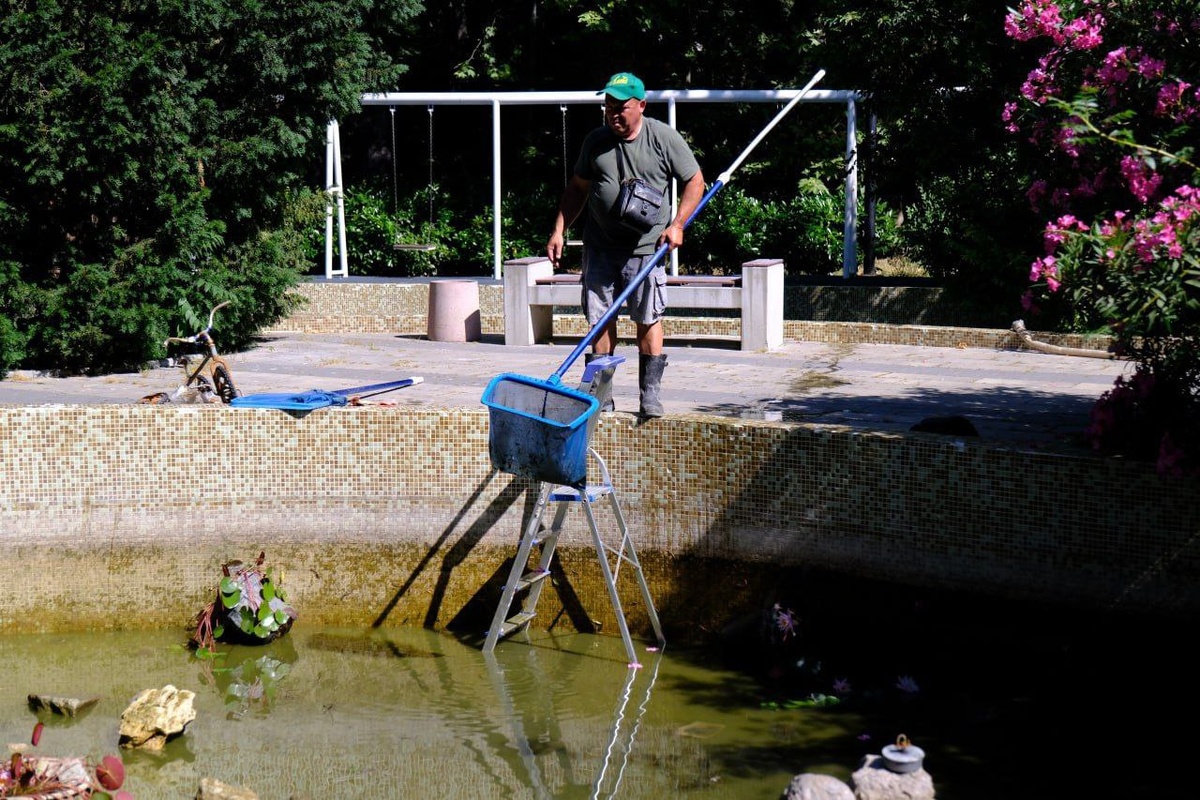 В ялтинском сквере на Ломоносова провели ремонт и очистку чаши бассейна, в которой образовалась трещина