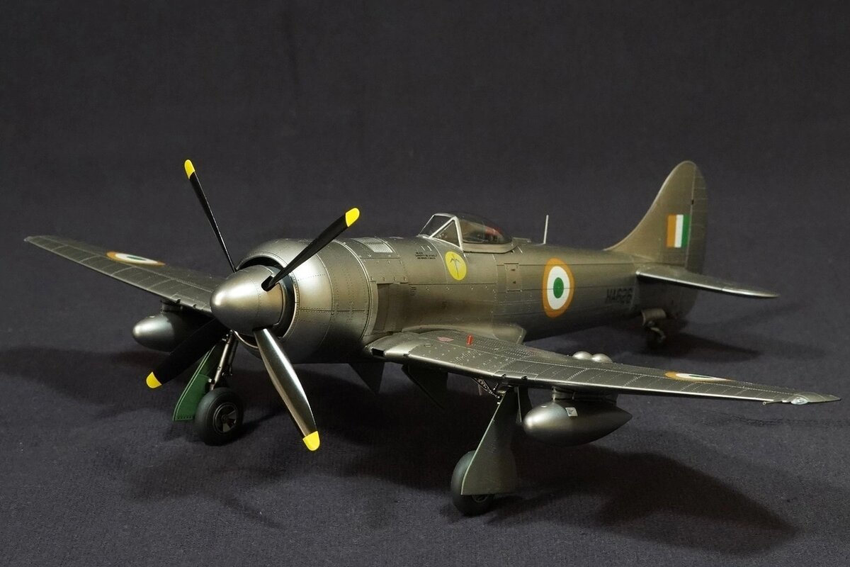 Hawker Tempest Mk.II автор: Евгений (Hephasto) Eduard, 1:48 Слово автору: "Добрый день, коллеги! Сделал модель темпеста королевских индийских ВВС в подарок коллеге из Индии. Масштаб для меня непривычный, мелковато всё показалось. Набор от эдуарда шикарен. Все отлито очень точно и четко, стыкуется идеально. Детализация для 48го масштаба впечатляющая - даже модель 32го масштаба с таким уровнем детализации смотрелась бы отлично. Бракоделам из Special Hobby есть чему получиться. Красил модель чем попало. Обычно модели под металл я крашу алкладом, но он у меня закончился и купить не удалось. Так что в ход пошли все найденные по углам металлики - Mr. Color и суперметаллики от ганзы, что-то от AK Xtreme Metal, остатки дюралюминия от алклада. Так что модель - своего рода кошка, на которой проверялась разные металлайзеры. Поскольку модель подарочная, пачкать её не стал. Только немного выхлопы надул." ================================