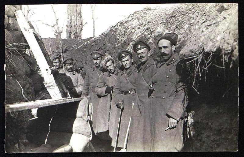 Офицеры 9-го Сибирского гренадерского полка в своих окопах, январь 1917 года
