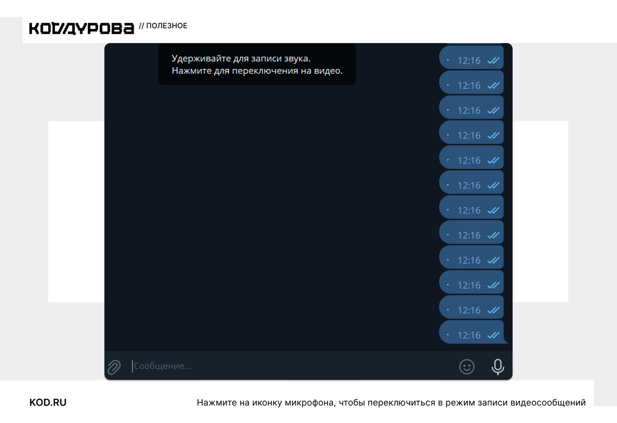 Telegram добавляет множество фишек, которые делают кружочки интереснее. Рассмотрим их по порядку.