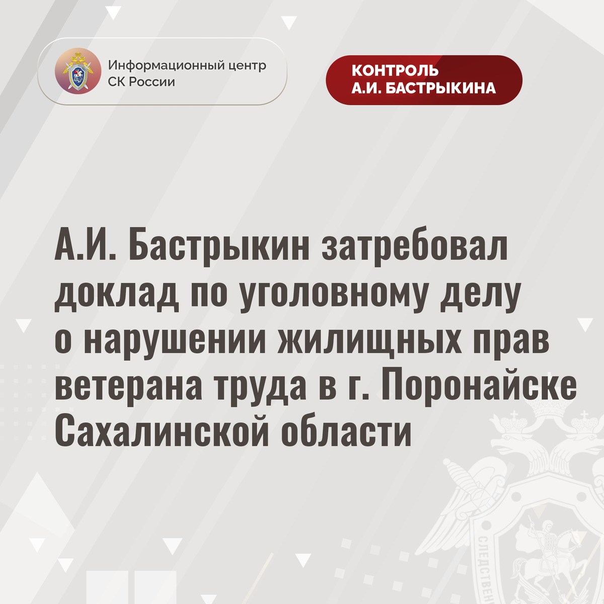 #СледственныйКомитет #СКРоссии #СКР #ИЦСКР #ИнформационныйЦентр #АлександрБастрыкин #ПредседательСКР #КонтрольПредседателяСКР #КомментарийКонтроль #СахалинскаяОбласть