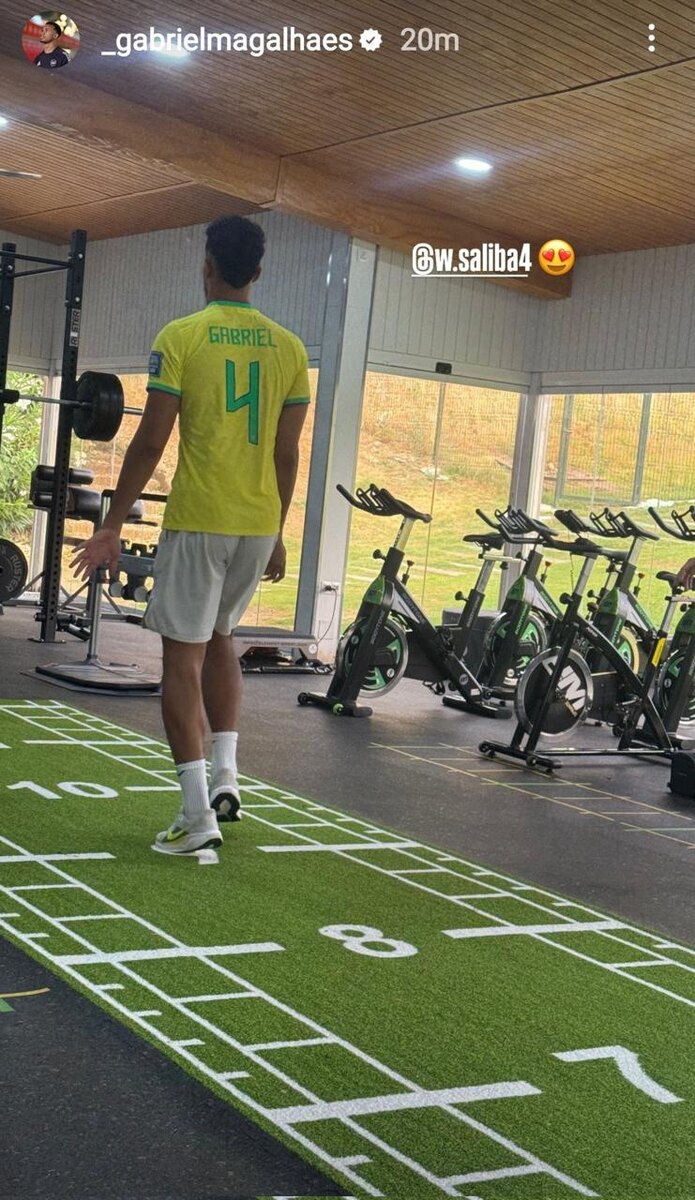 Вильям Салиба тренируется в футболке своего партнера по "Арсеналу" Габриэля Магальяэса 🤌