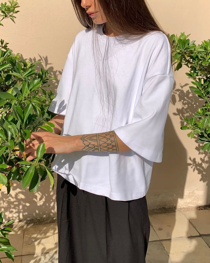 Можно потратить 100 000 ₽ и выглядеть скучно, а можно уложиться в 10 000 ₽ и стать иконой стиля. Не цена определяет ваш образ, а умение выбирать, сочетать и стилизовать. В этом материале — гид по базовым вещам до 3 000 ₽, которые будут актуальны сегодня, через год и даже через пять лет. Почему стоит купить: Белая футболка — универсальный базовый элемент. Сочетается практически со всем: от делового костюма до романтичных юбок. С чем носить: Совет: слегка заправьте футболку спереди или подверните рукава — визуально вытягивает силуэт. Почему стоит купить: Чёрные брюки подходят и в офис, и на свидание, «стройнят» и выглядят дороже своей цены. С чем носить: Совет: Подгоните длину у портного — сидящая вещь за 2 500 ₽ лучше, чем не по размеру за 25 000 ₽. Почему стоит купить: Её можно использовать как верхний слой или в total-denim¹ луке. Носится круглый год. С чем носить: Совет: Оставьте один-два нижних пуговицы расстёгнутыми и заправьте рубашку наполовину — создаёт эффект «дорогого» небрежн