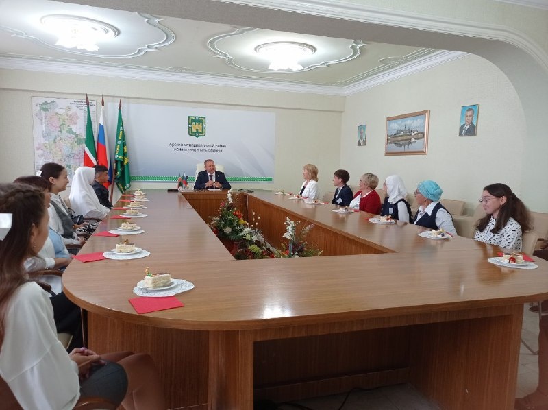 📊 Район башкарма комитеты җитәкчесе Алмаз Хисаметдинов 2024-2025 уку елының Бердәм дәүләт имтиханнарында 100 балл җыючылар белән очрашты.
