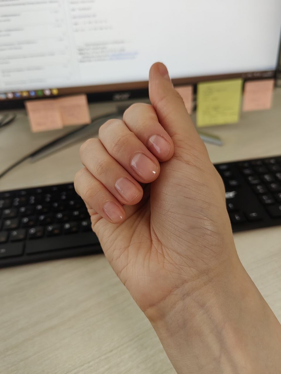 А я не пилила недели две уже, только длину убираю (и потихоньку притаскиваю на работу штучки для рук, мажусь целыми днями, сегодня йогурт