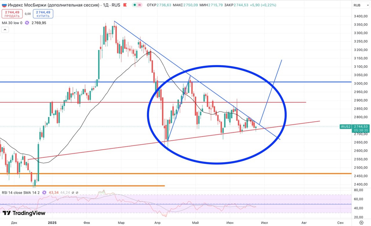 Наш рынок продолжает тошнить в треугольнике. Но времени, чтобы определиться, у него остаётся всё меньше 😉 Возможно рост обоснуют очередными надеждами на пис-дил от Трампа или скорым снижением ставки в июле 🤔 А пока смотрю, наблюдаю, покупаю облигации под снижение ставки 🧘♂️