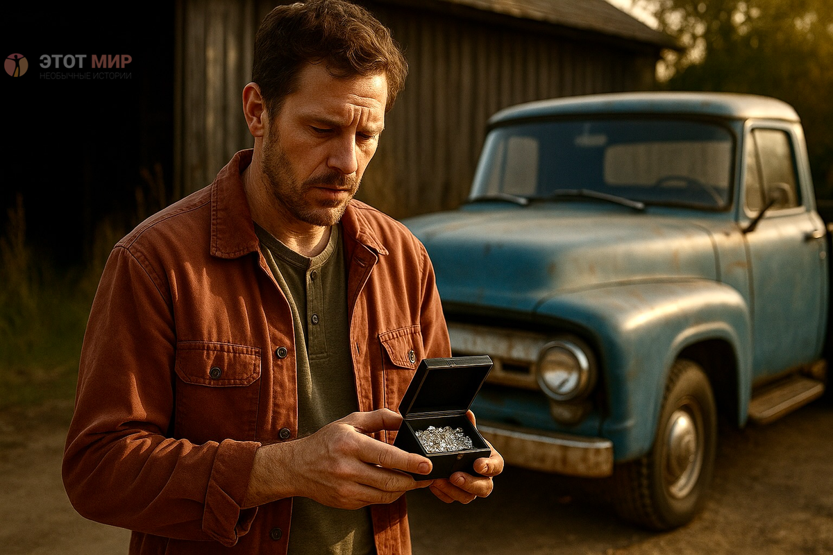 Под фургоном в аккуратными рядами лежали десятки, а может, сотни маленьких коробочек, похожих на спичечные, только крупнее. Он взял одну, приоткрыл, внутри оказался ещё один коробочек, изящный, дорогой. Открыл — дыхание перехватило: там, в глубине, переливались бриллианты.