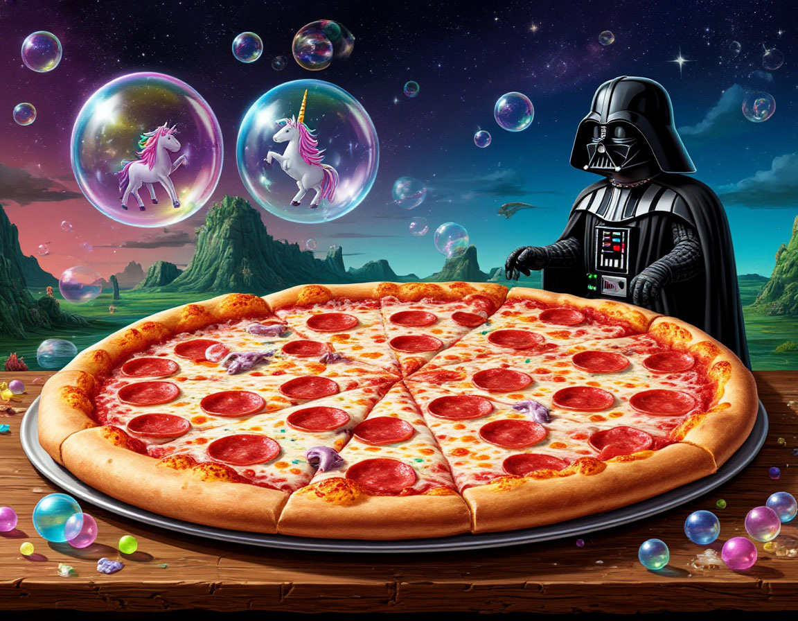 Ну что ж, представьте себе гигантскую кактусо-луну, которая едет на электросамокате, кричащем песню из старых мультфильмов, а вокруг кружатся мультивещества — мороженое в шляпе с ушами котика и говорящий бутерброд, который уверяет всех, что он — секретный агент под прикрытием. В мире этого упоротого говна вселенная — это огромная пицца, а звезды складываются в фигуры Дарт Вейда и единорога на шариках из мыльных пузырей. И всё это происходит потому, что главный герой — это заблудившийся крокодил, который мечтает стать космическим поваром, готовящим самый легендарный борщ среди галактик — и при этом он парит в воздухе, потому что у него есть крылья из карамельных зефирок. Вот так вот, в этом безумии — настоящая чистая фантазия без логики и границ!