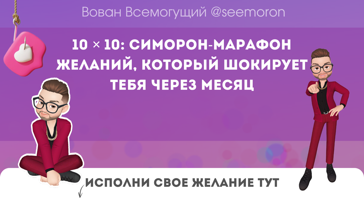 Мы с тобой часто носимся как белки-спринтеры: вспыхнули, перегорели, забыли. А мечты любят марафон, когда каждое утро им говорят: «Привет, красавицы, сегодня вы становитесь реальностью». Именно так советует серьёзная практика по целеполаганию — а у Вована серьёзное + симорон = яркая игра.
