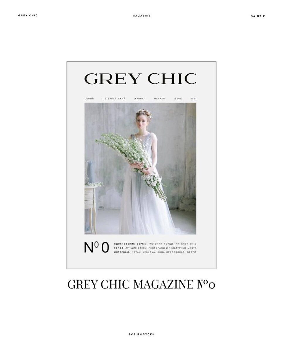 Совсем скоро выйдет 8-й регулярный номер GREY CHIC Magazine, а пока подробнее рассказываем о предыдущих выпусках. 🔴Журнал GREY CHIC Magazine №0 Первый печатный выпуск с лучшими проектами за шесть лет существования свадебного и ивент-агентства GREY CHIC. Этот выпуск — экскурс в прошлое: путь становления от студии декора, до свадебного агентства и печатного издания — книги стиля и духа Петербурга. 🔴Журнал GREY CHIC Magazine №1 Выпуск вдохновлен черно-белой эстетикой и характером модного Дома Chanel. На обложке номера размещена знаковая съемка LAGERFELD, главной героиней которой стала Татьяна Неклюдова. В номере соседствуют интервью с основательницей бренда Le Pompon Анной Бахаревой, моделью Ириной Данилиной, флористом Настасьей Паниной и другими героями. 🔴Журнал GREY CHIC Magazine №2 Номер посвящен важной идее — объединению локальной модной индустрии через истории дизайнеров-петербуржцев. Редакция журнала посетила модные Дома Татьяны Парфеновой, Яниса Чамалиди, Ларисы Погорецкой, Т