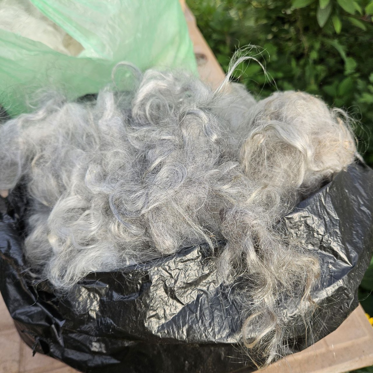 Такой пух отобрала на платок без основы-двунитку. Небольшой клочок постирала, чтобы посмотреть цвет Остальное стираю уже в пряже. Не люблю раздирать свалянный стираный пух