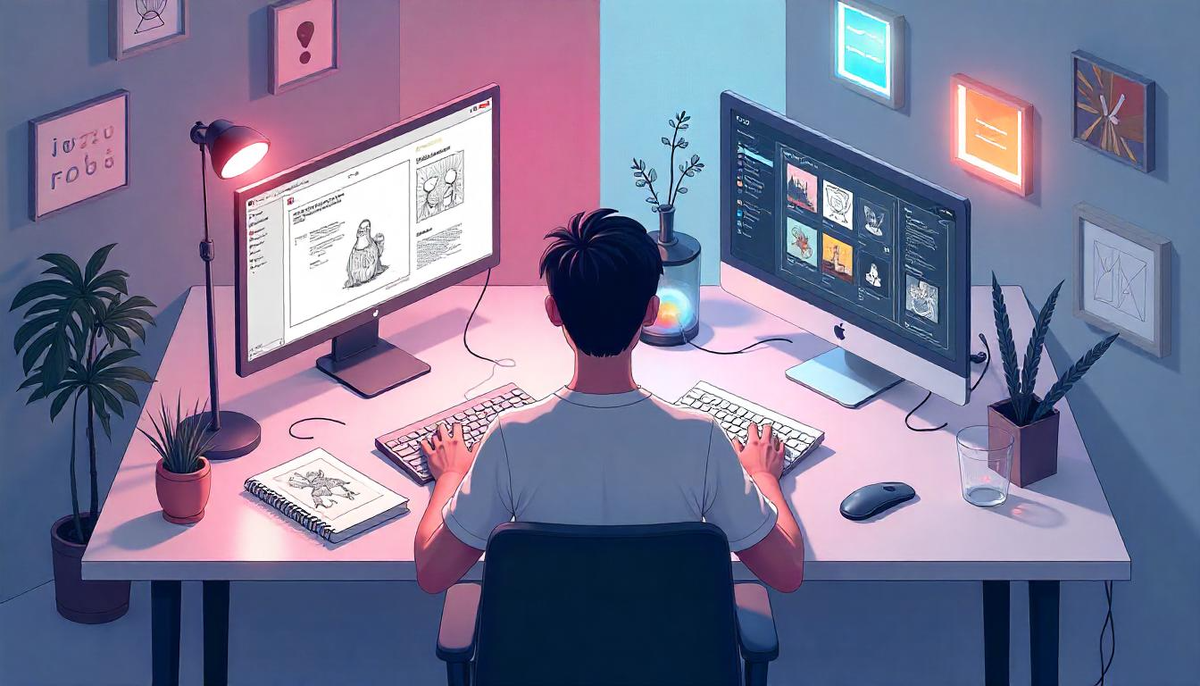 Когда-то я сидела в офисе, раз в день проверяла почту и делала вид, что у меня митинг. В душе было чувство: я делаю не то. Работа была не ужасной — просто абсолютно не моей. Я залипала на Pinterest, собирала мудборды без повода, делала обложки плейлистов лучше, чем презентации по работе. Это были знаки, которые я долго игнорировала. Пока не стало невозможно. Увольнение было не героическим, а скорее — нервным. У меня не было фриланс-бэкграунда, постоянных клиентов или "подушки". Зато была одна сильная мысль: я могу учиться быстро и делать красиво. Я начала с оформления шапок, визиток, шаблонов для сторис. Не стеснялась брать простые заказы — они были моей практикой. Параллельно проходила курсы, качала насмотренность, делала фиктивные проекты, чтобы собрать портфолио. Мой первый настоящий заказчик пришёл с фразой: "А вы делали обложку для подкаста "Ночь с ёкаем"? Я в восторге". (Спасибо, Behance.) Дизайн — это не просто про шрифты и выравнивание. Это про чувствительность к деталям, к люд