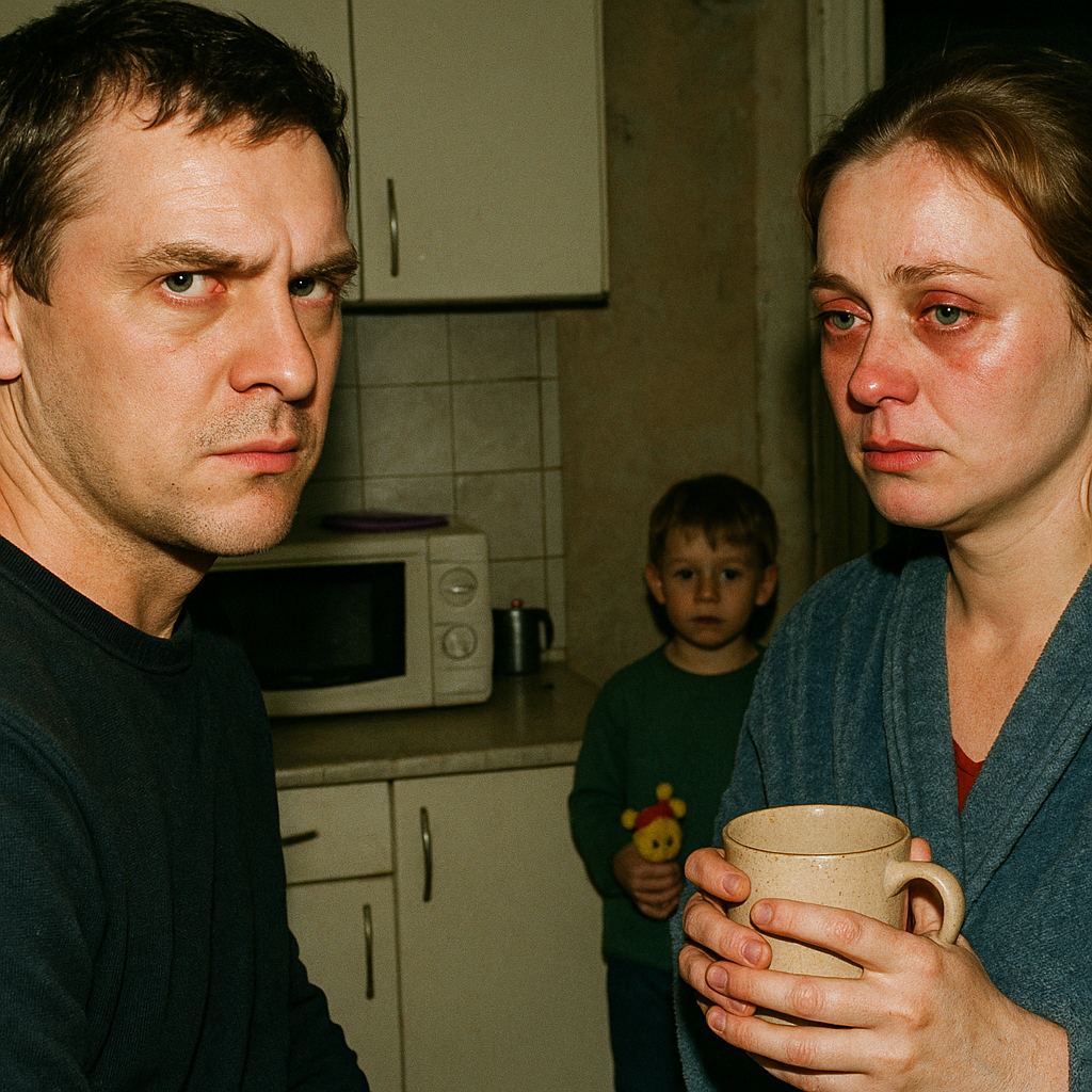 Он повернулся к жене. Та стояла у плиты, будто из гипса. Ни звука. Только плечи ходили — тяжело, глухо.