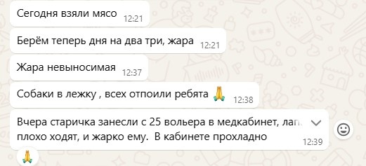 Здравствуйте, дорогие друзья! В Бурятии стоит невыносимая жара. Солнце палит нещадно. Ребята приступают к работе в 7 утра. Чтобы каша не закисала, ее нужно раздать как можно быстрее. И потом еще необходимо напоить наших пушистиков. У нас закончились запасы мяса. Начинаем покупать. Закупки мясного из-за поломок морозильных камер сейчас на 2-3 дня. Будем приобретать малыми партиями. Долг за крупу у нас 55 000 рублей. По старому зарплатному долгу ребята приняли решение "заморозить" сумму до лучших времен. Сборы у нас не большие. Главная задача сейчас - закрывать текущие расходы. Крупа, мясо, дрова, лекарства и, конечно, текущая зарплата - главные статьи расходов. С нашей долговой карты остатки переведены в приют. Сборы пока прошу вести на основную карту и расчетный счет. Не до старых долгов. Не накопить бы новых. Принимаем от Вас посылки: