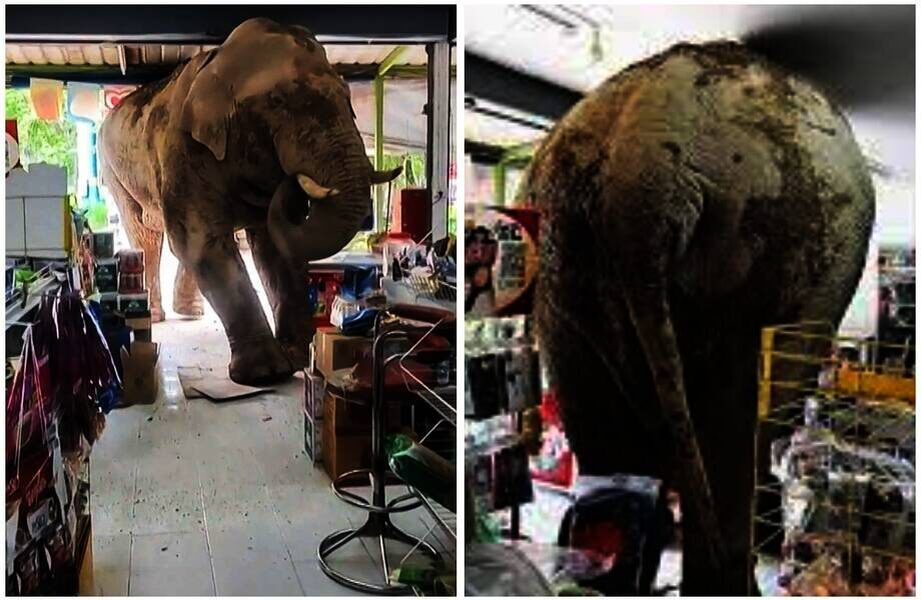 Слон в Таиланде совершил набег на магазин, съел закуски и сбежал, не заплатив