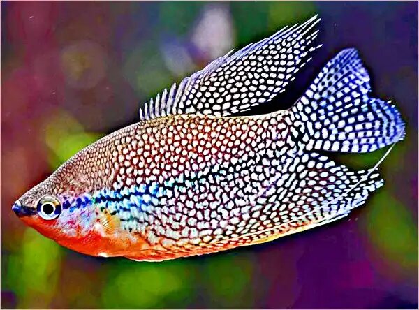 Жемчужный гурами (Trichopodus leerii) — это настоящая звезда среди лабиринтовых рыб. Его научное название происходит от имени голландского натуралиста Питера Блеекера, который первым описал этот вид в 1852 году. Но для нас важнее не латынь, а то невероятное зрелище, которое представляет собой эта рыба.