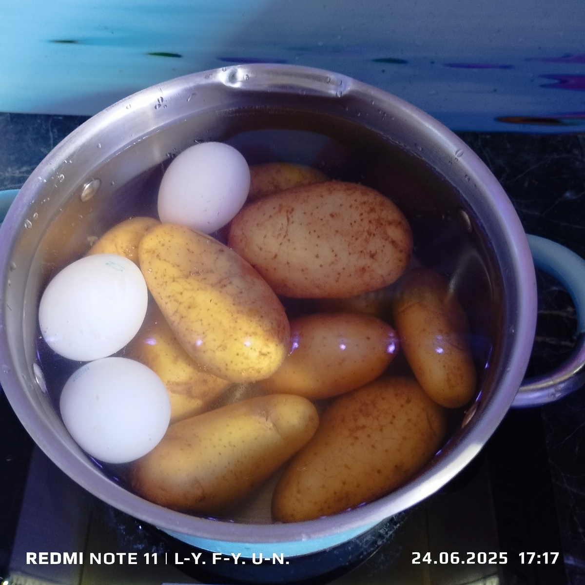 Готовим знаменитое блюдо русской кухни - "O'Kroshka!" Для этого я специально купил свежий молодой картофель, чтоб сварить его в "мундире " размер картофеля не имел значения так как не нужно было применять геометрическое знание об массе продукта при очистке окружности. Варим картофель и закидываю туда заранее Яйца , но нужно их вытащить через несколько минут и сильно напугать холодной водой, применить стрессовую нагрузку , чтоб яйцо в панике расслоило скорлупу и сам продукт который нужен для приготовления окрошки. Есть у меня устройство для нарезки овощей, которое было куплено для того чтоб протестировать беспроводную технологию постоматов от Яндекс Маркета. 😁 Пригодилась решеточка для кубизма. Хоть и есть блендер, но как говорит Адский Шеф 👨🍳 из Телевизора вкус должен ощущаться не общей массой а играть оттенками. Колбасу "Докторскую" нарезаем также с помощью этой решётки для овощей. Есть у нас два вида огурцов, сорт "гладкие" натираю на тёрке чтоб растворить огуречную массу полнос