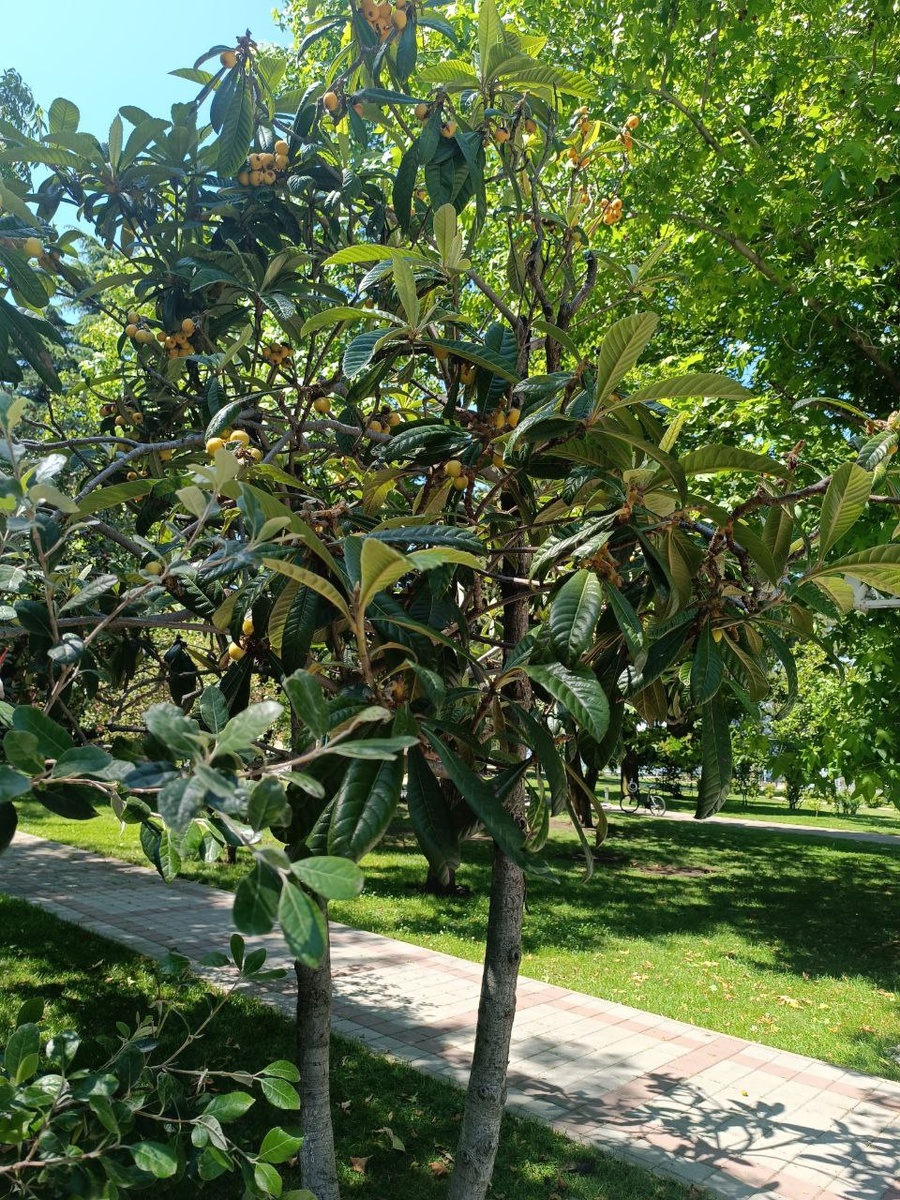 Век живи - век учись. Только на днях гостеприимная анапская земля угощала спелой шелковицей, а вот в сочинских субтропиках она отошла. Но сегодня вот впервые попробовал мушмулу (Эриобо́трия япо́нская). Как мало же мы знаем про российские богатства. Чем известна мушмула? Косточки больше, чем самого фрукта. Видимо, поэтому она не так популярна, что я её нигде не видел и не пробовал до этого. Вкусвилл, например, возит мушмулу с Египта (оттуда же манго и ананасы, например). "Мушмула — это источник фитовеществ, особенно флавоноидов и полифенолов, обладающих сильными антиоксидантными и противовоспалительными свойствами. С потреблением продуктов, богатых полифенолами, связывают снижение риска развития таких хронических заболеваний, как атеросклероз, диабет, сердечно-сосудистые заболевания. Мушмула — отличный источник кальция, магния, железа и особенно калия и витамина С. В мушмуле много пектина — клетчатки/пищевых волокон, которые помимо противовоспалительного эффекта помогают контролировать