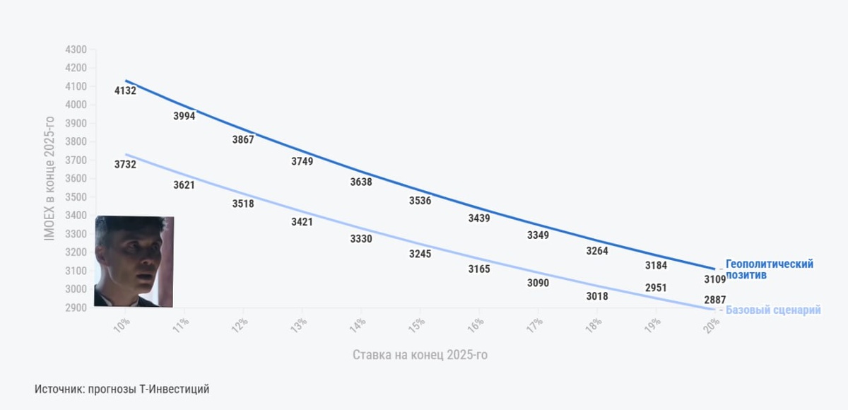 Сохраняем сдержанный взгляд на перспективы улучшения геополитической ситуации, однако в случае их реализации индекс Мосбиржи может прибавить еще 250—300 пунктов в 2025 году при прочих равных.