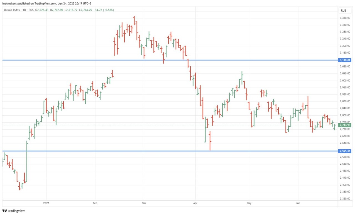 ❗️24 июня российский фондовый рынок показал снижение, индекс МосБиржи подешевел на 0,53% до уровня 2744,95.