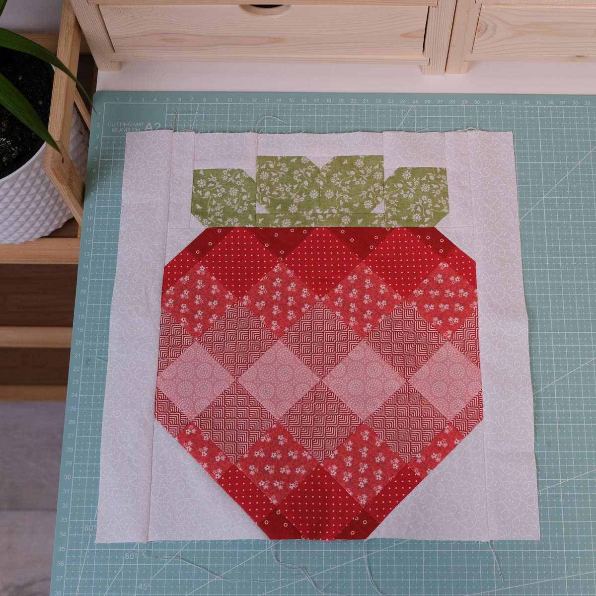 Сегодня публикую инструкцию в дюймах. Можно сшить блоки 12 и 6 дюймов. Инструкцию в см опубликую на днях, нужно все посчитать и перепроверить. Для блока Клубника вам понадобится 5 оттенков красных и розовых тканей, 1 цвет ткани для фона и 1 для листьев. Блок можно использовать для подушек, одеял, салфеток.