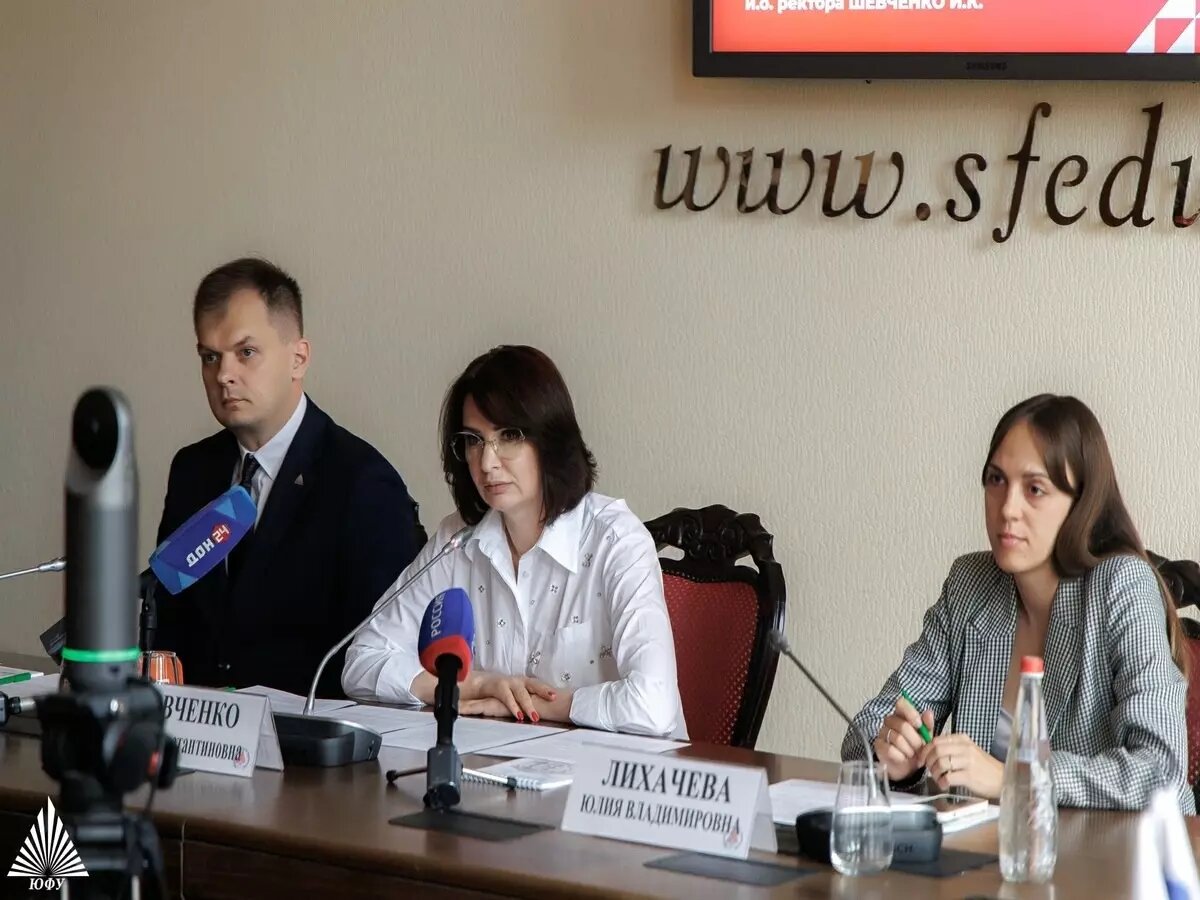 В Южном федеральном университете 24 июня прошла ежегодная пресс-конференция, посвященная началу приемной кампании 2025 года. Актуальную информацию рассказали журналистам в Главном корпусе ЮФУ. В мероприятии приняли участие и ответили на все волнующие вопросы и. о. ректора ЮФУ Инна Шевченко, и. о. проректора по цифровой трансформации Александр Трофимчук и начальник Управления профессиональной навигации и приема ЮФУ Юлия Лихачева.