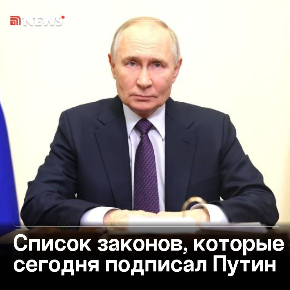 Запоминайте: собрали перечень законов, которые сегодня подписал президент. 🔴С 1 марта 2026 года даты оплаты ЖКХ перенесут с 10-го числа на 15-е, а срок предоставления квитанций с 1-го на 5-е число месяца; 🔴Вывески, реклама и указатели должны быть только на русском языке; 🔴В России создадут национальный мессенджер: он объединит «Госуслуги» и общение; 🔴Подросткам потребуется согласие родителей на открытие счета в банке; 🔴Дропперам увелично наказание до шести лет лишения свободы; 🔴До пяти лет лишения свободы грозит дропперам за возбуждение ненависти и унижение человеческого достоинства по экстремистским мотивам; 🔴Введены штрафы для иноагентов за несоблюдение требований Минюста: для физлиц — от 30 до 50 тыс. рублей, для должностных — от 100 до 300, для юрлиц — от 300 до 500; 🔴Активы россиян и организаций, подозреваемых в диверсионной деятельности, будут замораживать; 🔴Власти смогут использовать искусственный интеллект в борьбе с антиконкурентными сделками. ⭕ Подписаться