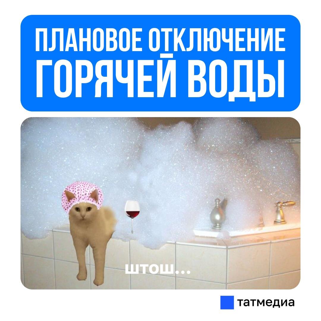 В ответ на пост ❌🚿С 1 по 15 июля в Казани пройдут плановые отключения горячего водоснабжения в жилых домах, детских садах и школах График отключения горячей воды опубликован на официальном портале Мэрии Казани. Подача горячей воды будет временно приостановлена поэтапно: 🔹С 10:00 1 июля до 10:00 4 июля 🔹С 10:00 4 июля до 10:00 15 июля При обнаружении любых признаков повреждения коммуникаций необходимо сообщить на круглосуточную линию «Казанских тепловых сетей» по телефону 8(800)234-82-43, а также соблюдать правила безопасности. @tatmediaofficial