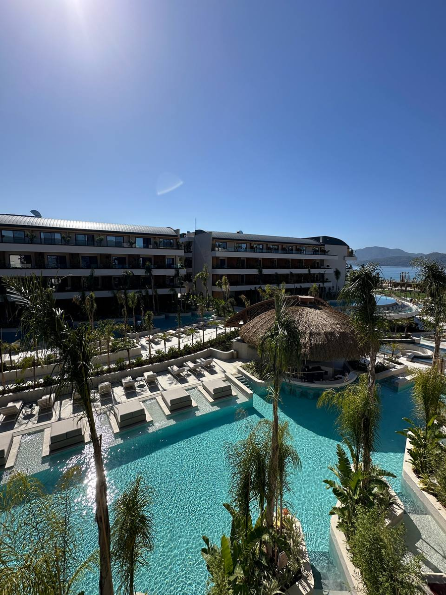 Если вы давно хотели открыть для себя Фетхие с новой стороны — вам точно стоит обратить внимание на XO Cape Arinna 5★. Это не просто отель — это новая философия отдыха, где соединились элегантность, комфорт и стиль. Я оказалась в этом отеле одной из первых — он только открылся, и честно скажу: я влюбилась с порога. Отель расположен в районе Чалыш, который отличается от «открыточного» Фетхие, с которым ассоциируются зелёные горы и бирюзовое море. Здесь — равнина, тёплый песок, спокойствие и свежесть. И знаете что? Этот контраст делает место по-настоящему уникальным. Отель нового поколения Дизайн и атмосфера — стильные интерьеры, дорогая мебель, грамотно спланированное пространство, приватные террасы, и даже минибар не просто холодильник, а красиво выдвигающаяся ниша. Подогреваемые бассейны — с 15 апреля по 15 мая и с 15 октября по 15 ноября во всех бассейнах включён подогрев! В остальное время — по погоде и решению отеля. Прозрачные бортики у бассейнов — фото получаются волшебные! Так