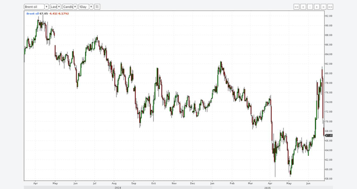 Цифры говорят сами за себя. Brent рухнул с $76,48 до $67 за баррель — падение за считанные часы.