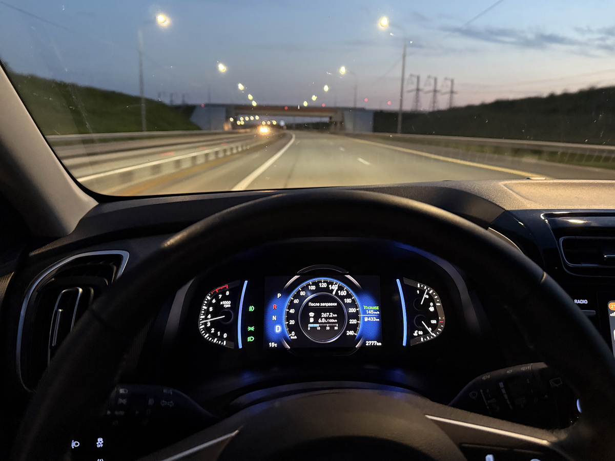 Следующий отрезок пройден при стабильной скорости в 100 км/ч. Расход топлива увеличился незначительно и составил 6,5 литра на 100 километров пути. В целом ехать было комфортно, а обороты двигателя на шестой передаче были невысокими. Но платная трасса даёт ещё больше возможностей для разгона, и здесь был обнаружен интересный момент.