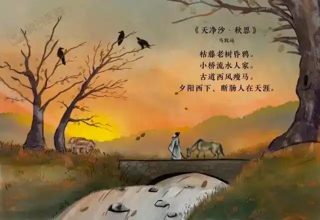 Древняя тропа, западный ветер, тощая лошадь. 夕阳西下,