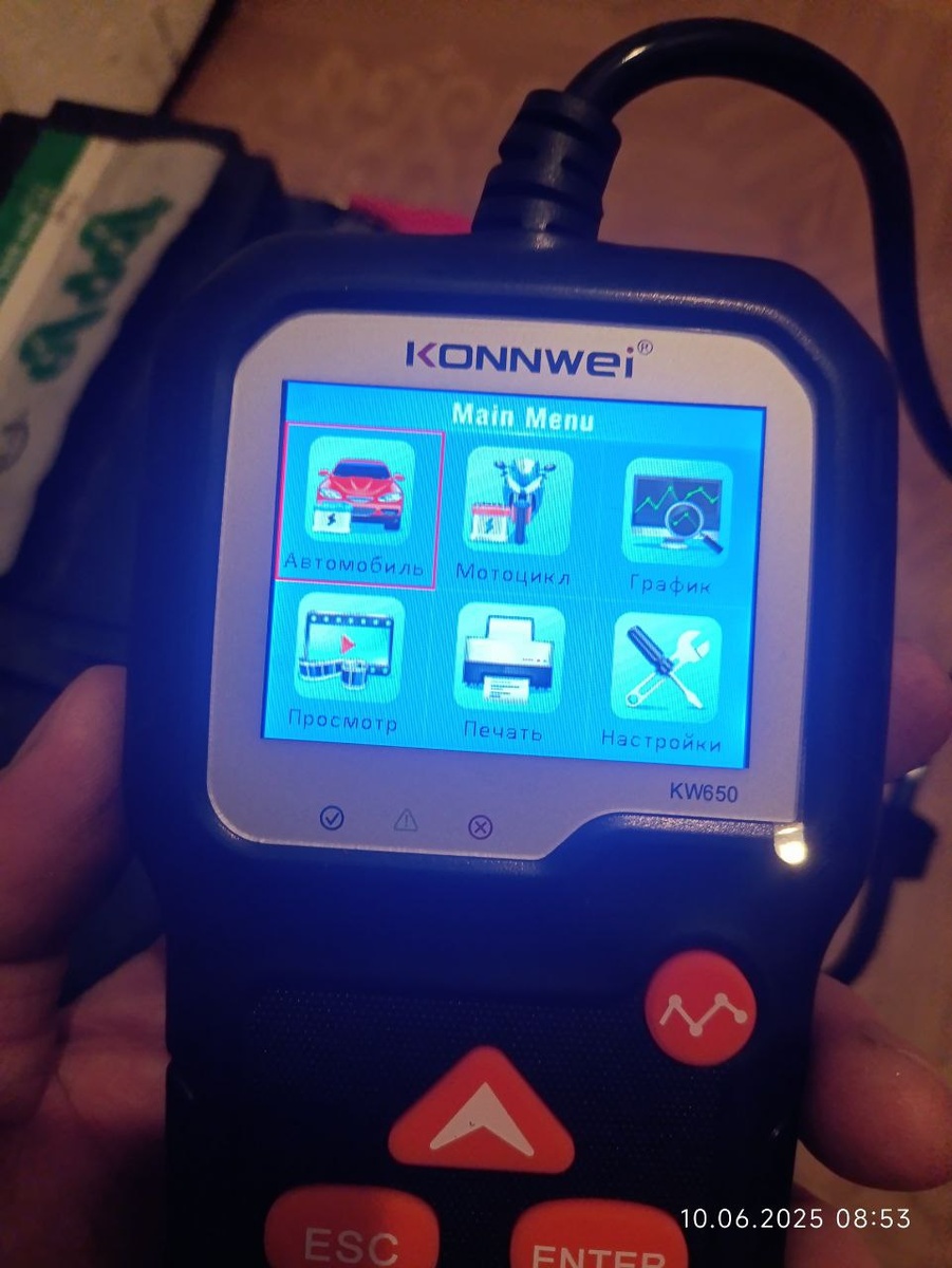 Привет, друзья! Сегодня хочу поделиться с вами опытом восстановления AGM аккумулятора с заводскими параметрами: ёмкость 80 А·ч и пусковой ток 800 А. Это история о том, как вернуть жизнь батарее и продлить её срок службы своими руками. Снял аккумулятор с машины и провёл замеры с помощью анализатора Konnwei KW650, аккумулятор был куплен в сентябре 2021 года и с тех пор ни разу не заряжался: Результаты: Снял защитные наклейки — под ними пробки, которые не так просто открутить без специального инструмента. Это намек производителя, что аккумулятор "необслуживаемый". С помощью остроухих плоскогубцев выкрутил пробки и обнаружил, что маты сухие и тонкие, между ними видны пластины. Пришлось добавить дистиллированную воду по 5 мл в каждую банку шприцом: Это объясняет, почему плюсовая сторона нагревается больше: двигатель выделяет тепло, и там сильнее испаряется вода. Подключил зарядное устройство "Кулон 820": Заряд длился четверо суток. Чтобы улучшить результат — добавил дозаряд: Разрядил акку