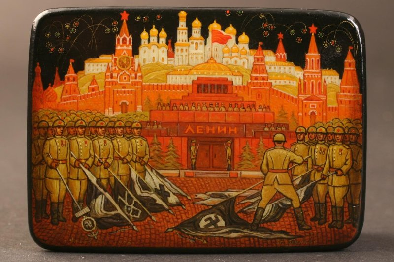 Сегодня исполняется 80 лет со дня парада Победы 24 июня 1945 года на Красной площади. О самом параде Победы ранее я уже ранее подробно писал Но любопытно бросить беглый взгляд на всю историю СССР в зеркале лаковой миниатюрной живописи Федоскинской фабрики. В ХХ веке неожиданно выяснилось, что этот старинный художественный промысел, ведущий начало с 1795 года, может прекрасно изображать революционные события, покорение Арктики и освоение космоса.
