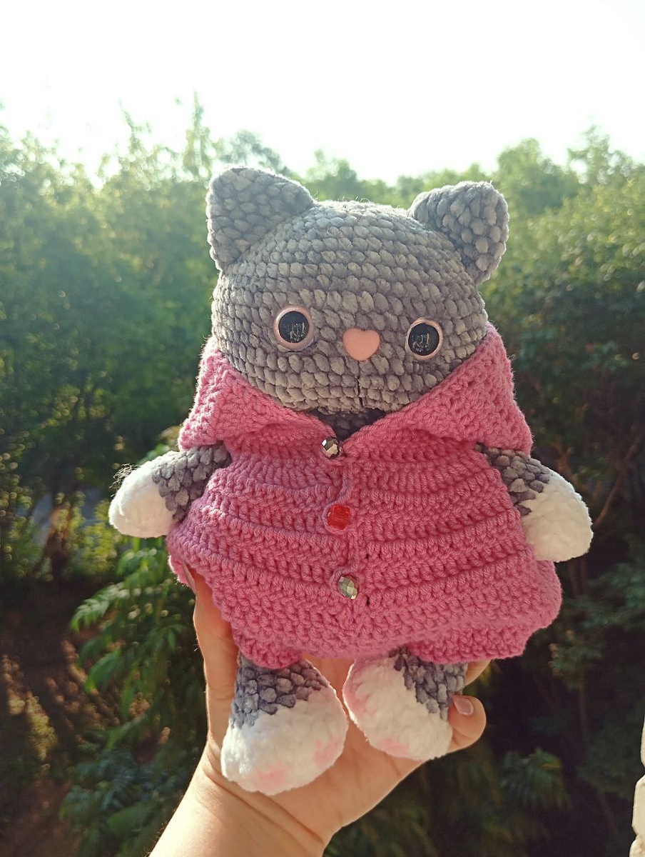 На кошку ушло полтора мотка пряжи 🤩 (как бэ это много для игрушки) . И на комбез - почти целый моток