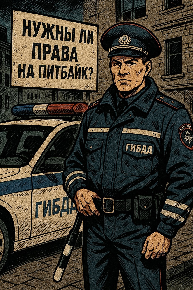 Если питбайк имеет ПТС (паспорт транспортного средства) и зарегистрирован в ГИБДД, то он приравнивается к обычному мотоциклу или скутеру. В этом случае для его управления нужны права категории, соответствующей объёму двигателя. Питбайк как спортинвентарь: