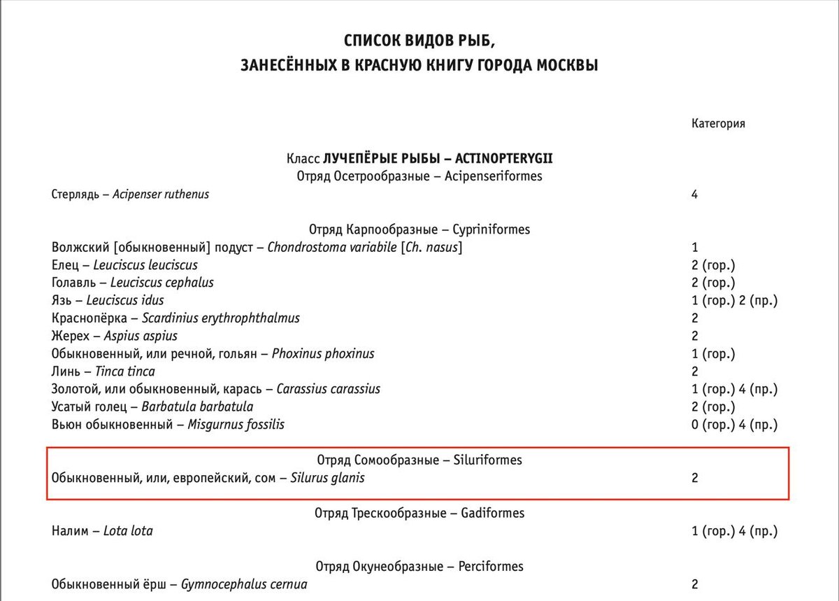 Процесс по введению экзамена на право охоты, начатый еще в 2022 году - увенчался успехом и уже совсем скоро получить охотничий билет, просто поставив "галочку" на портале Госуслуг, будет невозможно. И это правильно, безусловно, так как охота является тем видом рекреации, который требует глубоких знаний и подготовки. При этом в весьма схожем по многим параметрам с охотой занятии, а именно в любительской рыбной ловле царит полная вакханалия. Рыболовный билет, существовавший во времена СССР, канул в небытие вместе со страной, а взамен в России ничего не появилось. При этом необходимость обучения и подготовки не вызывает сомнений. Вот, например, недавний случай: https://t.me/newsmoscow/20010 Для тех, кто не из Москвы - Северный речной вокзал находится тут, внутри МКАД. А на скрине - страница из Красной Книги города Москвы Не знаю, как Вам, но для меня очевидно, что счастливый "победитель сома-гиганта" не очень в курсе, что в руках у него краснокнижная рыба и что нужно делать в случае ее