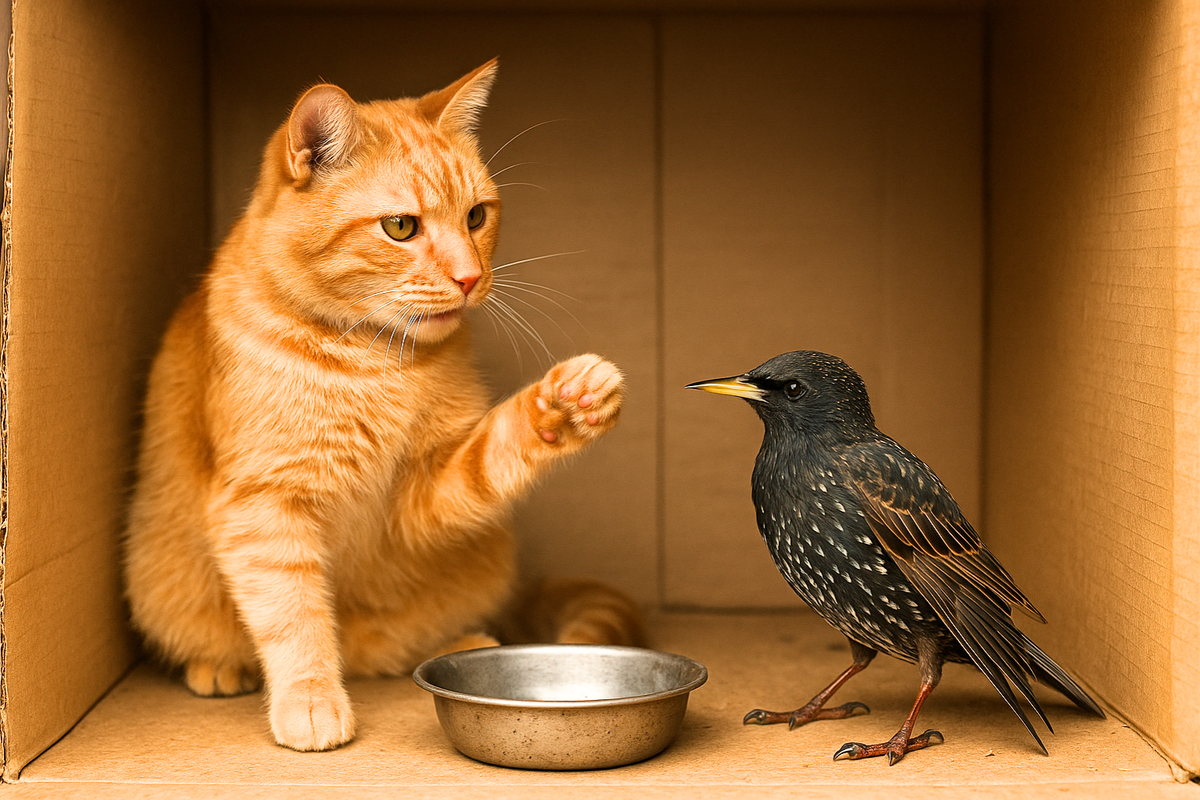 Рыжий кот и раненый скворец. Дачные друзья поневоле.