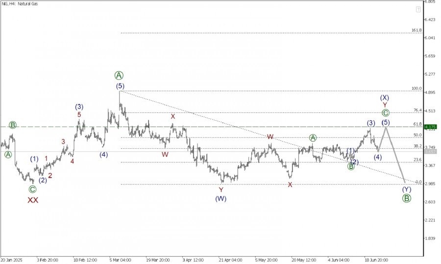 https://basechop.ru/wordpress/?p=47769 Глядя на текущий график, можно заметить, что по Газу может формироваться крупный коррекционный тренд. На текущем графике представлена разметка большой действующей волны (Y), принимающей форму тройного зигзага W-X-Y-XX-Z. На текущем графике мы видим, что действующая волна Z похожа на стандартный зигзаг, внутри которого завершен импульс [A]. Сейчас может формироваться коррекционная подволна [B], которая, судя по всему, принимает форму двойного зигзага (W)-(X)-(Y). Предполагается, что на сегодняшний день завершена только первая действующая волан (W), она приняла форму двойного зигзага W-X-Y. Сейчас в процессе развития может находиться противодействующая волна связка (X), она тоже представляет собой двойной зигзаг W-X-Y. На последнем участке графика может формироваться финальная зигзагообразная волна Y. Внутри волны Y могла подойти к концу коррекционная подволна [B], поэтому в ближайшее время участников рынка может ждать разворот цены и начало рост