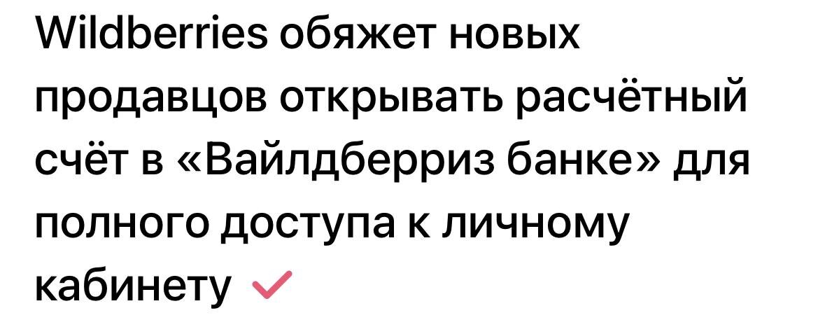 «После завершения регистрации продавцы могут сменить в личном кабинете реквизиты счёта «Вайлдберриз банка» на реквизиты счёта, открытого в любом другом российском банке.»