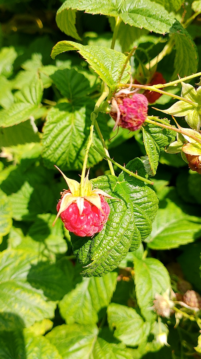 Проснулась от того, что Любимыч встал раньше меня, у него рабочий аврал и со словами "спи, спи, Наточка" пошел на кухню заливать молоко в мультиварку и варить кофе. Какой уж тут сон теперь?!Прилагаю усилия чтобы выбраться из мягких лап Морфея, хотя особо можно не торопиться, до момента как мультиварка призывно пикнет:"хотите кашки, дурашки?" примерно 20 минут. Одна из первых мыслей после пробуждения: а лето-то все, на убыль пошло, как так, я своего согласия не давала! Ладно, уговорили, встаю, а то остатки лета просплю) После завтрака едем в сад, везде заливает, а у нас сушь. Но температура очень комфортная, +22, ни жарко, ни холодно, оставьте так и ничего не меняйте)) И прямо у калитки сюрприз: несколько ягод малины поспели, и так и просятся:"съешь меня!" Ура, дождались! Пока немного, но перспектива радует. К выходным можно красную смородину собирать. В общем, надо готовить банки, прикупить еще сахар и открывать консервный заводик. Яблоня склоняет ветки, неожиданно урожай яблок