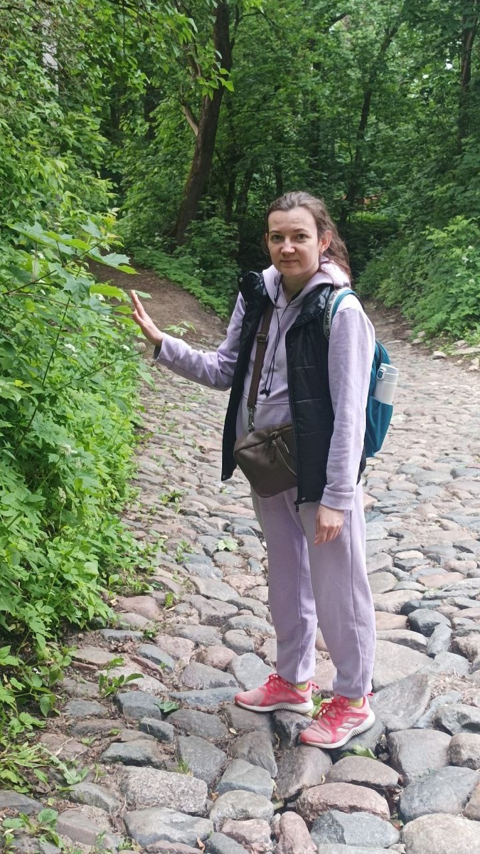 Фото сделано 11 июня 2025г 19.30 Смоленск. Булыжная мостовая. По ней мы дошли до берега Днепра🤗 Сама дорожка выглядит сказочно! Фотографии очень красивые получаются, просто я устала уже. С 6 утра на ногах, позади прогулки по городу, музей и две замечательные экскурсии. Будете в Смоленске, обязательно прогуляйтесь здесь💕