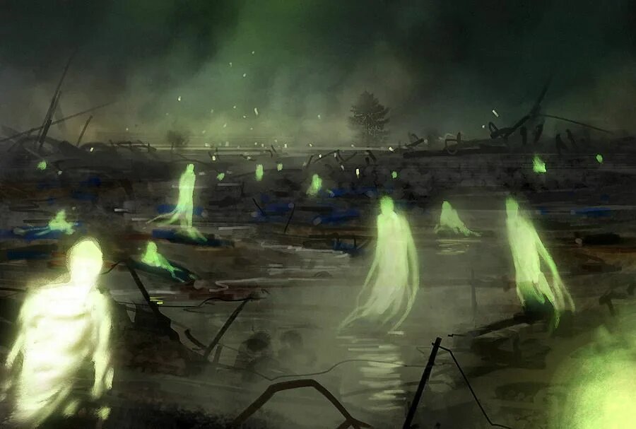 Духи умерших на полях сражения так и остаются привязанные к месту гибели своего тела. Те, кого убили, так же остаются привязанные к месту убийства. Отсюда и берутся привидения, пугающие людей в старых замках и не только.