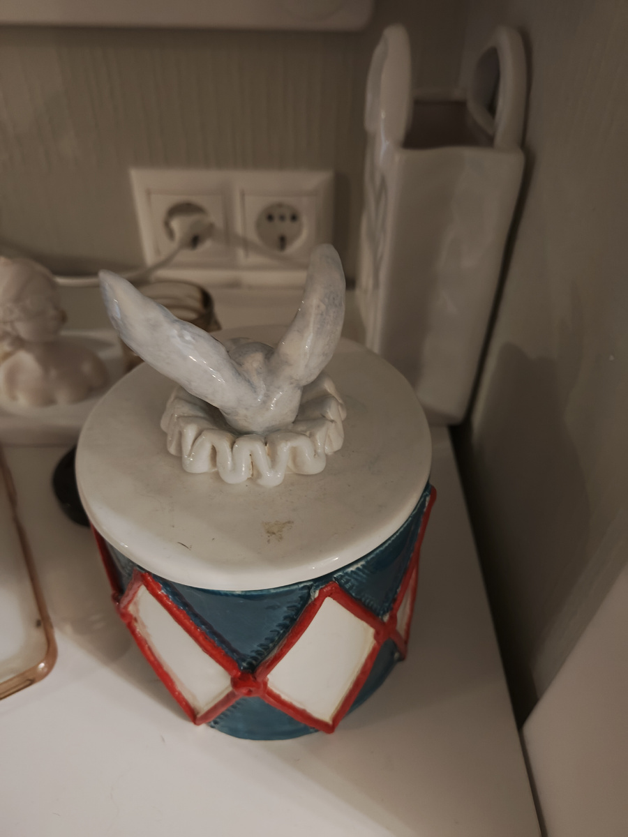 Баночка для хранения в цирковой или АлисоВСтранеЧудесной тематике. Все фото изделия традиционно в конце поста. Изделие сделано из пластов без гончарного круга, покрыто глазурями. Немного об этой технике, вроде бы самой очевидной, можно почитать в этом посте про кувшинчик: Этот пост будет маленьким, так как по технике всё тут сказано. Это изделие я делала в серии с двумя другими, из так называемого моего "циркового цикла творчества" ))) Ещё одно пока не выкладывала. Другое изделия в этом стиле смотрим тут: баночка для кофе: Полная фотосессия изделия: